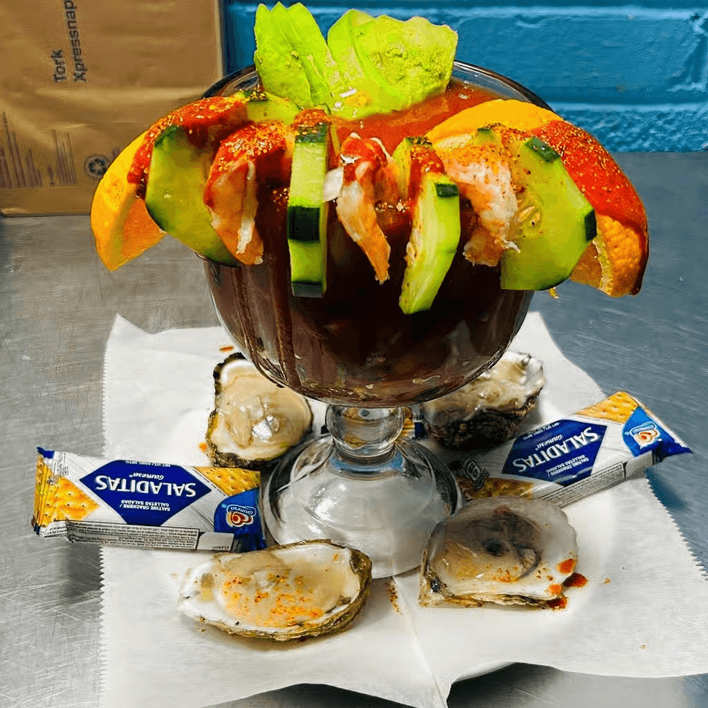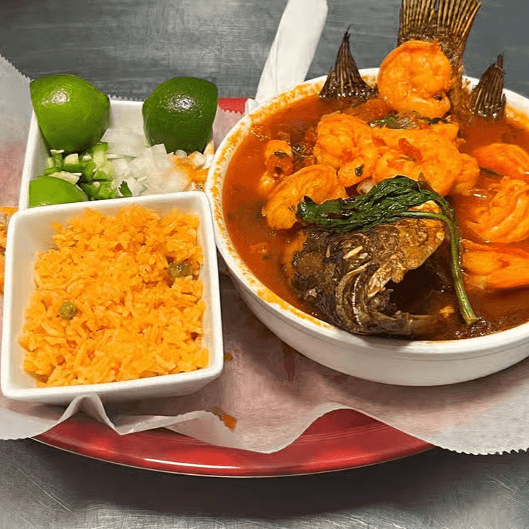 Mexican seafood soup made with a variety of seafood mix as tilapia, shrimp, crab legs, calamari rings. Served with tortillas or bread