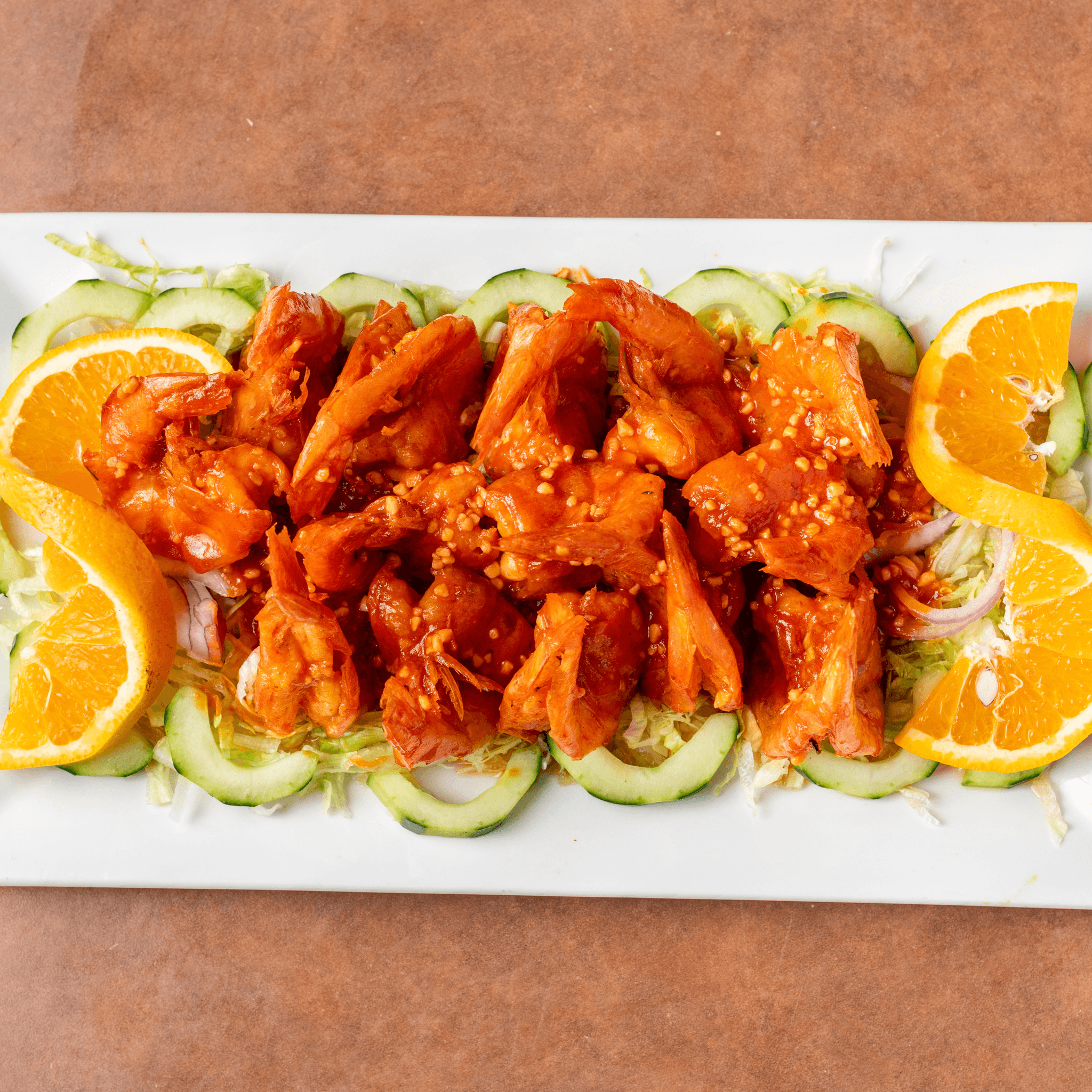 Shrimp perfectly cooked in our delicious chipotle sauce. Served with rice and regular salad