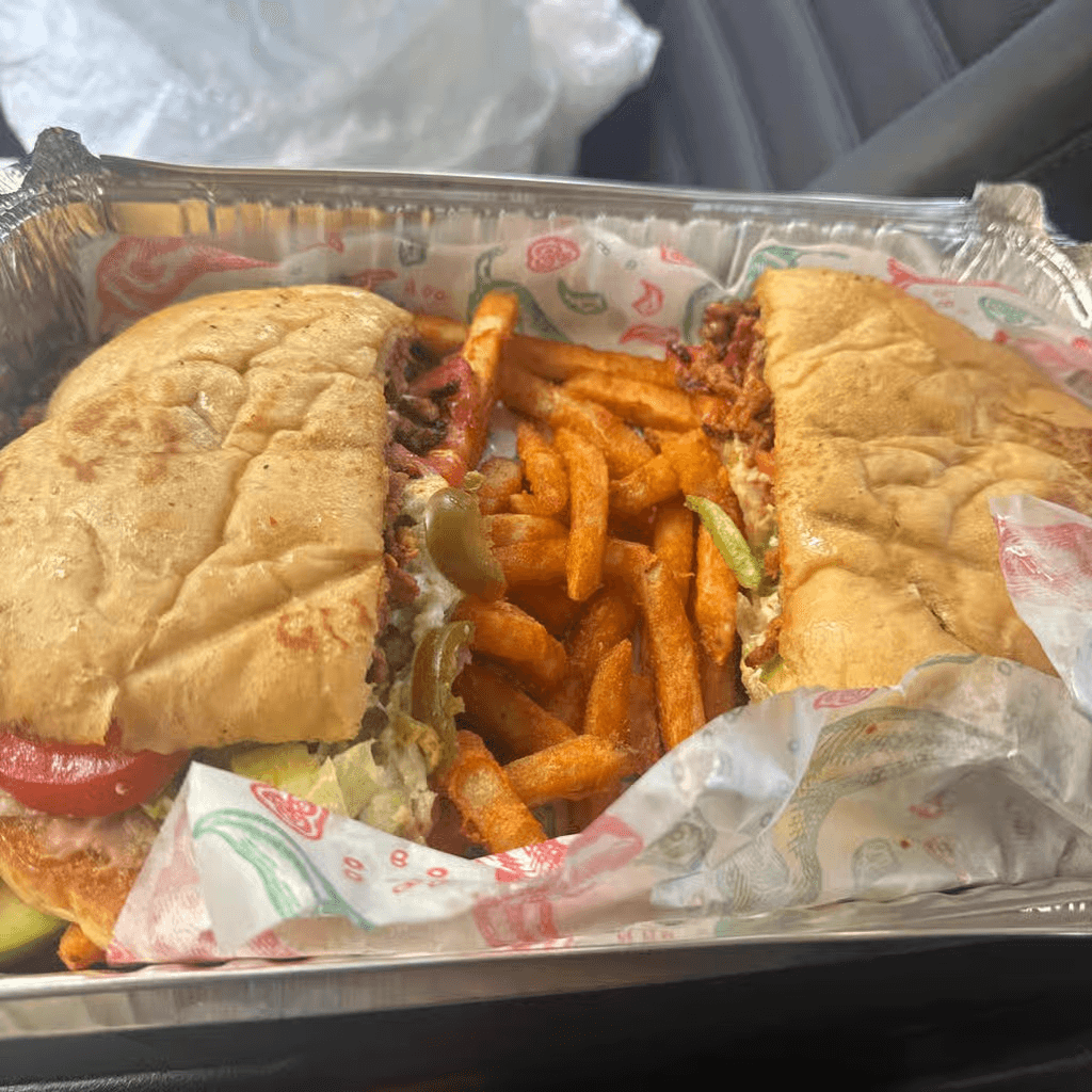 Sandwiches filled with your choice of meat, mayonnaise, refried beans, pickled jalapenos, queso fresco, lettuce, tomatoes and avocado slices. Served with fries