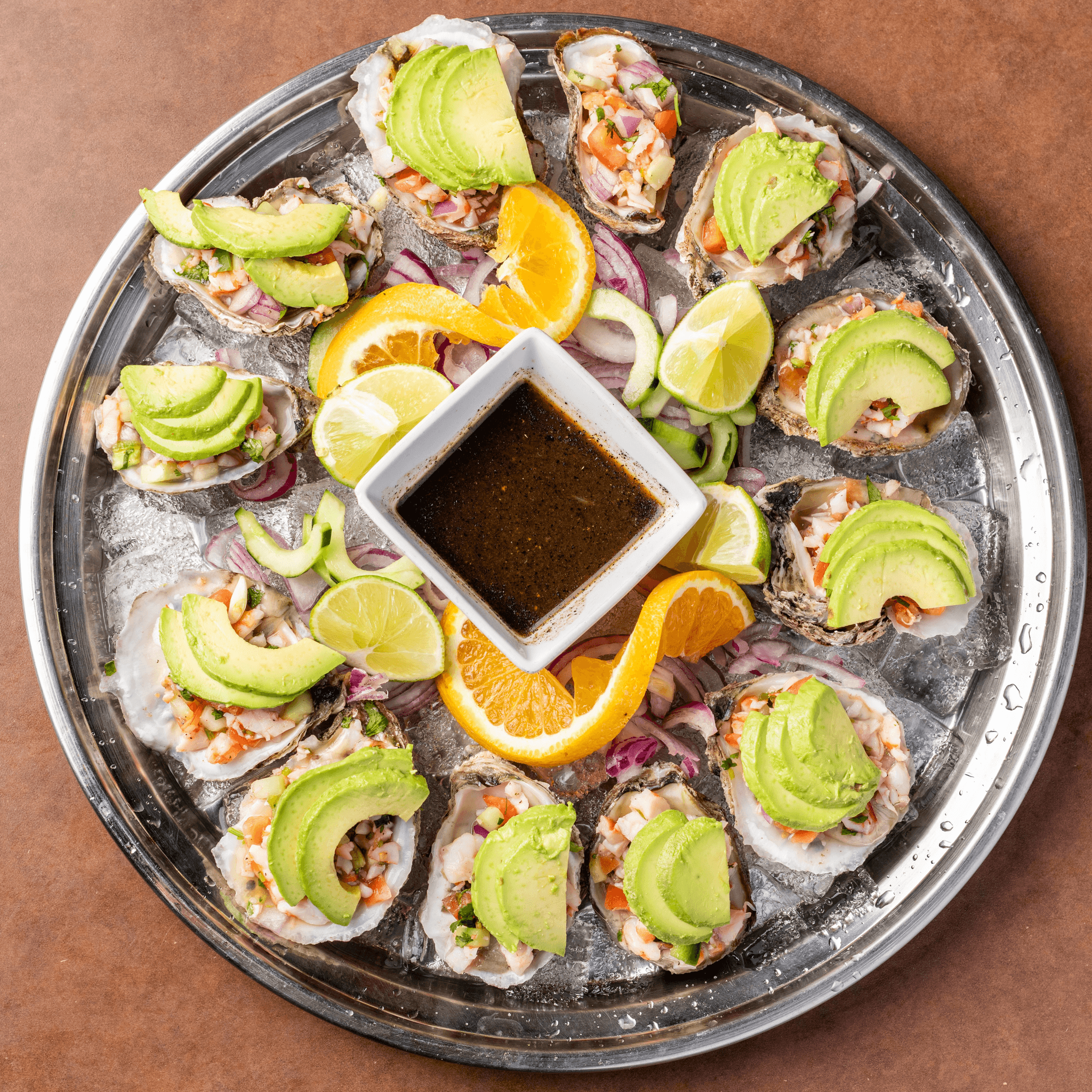 Fresh oysters stuffed with shrimp ceviche